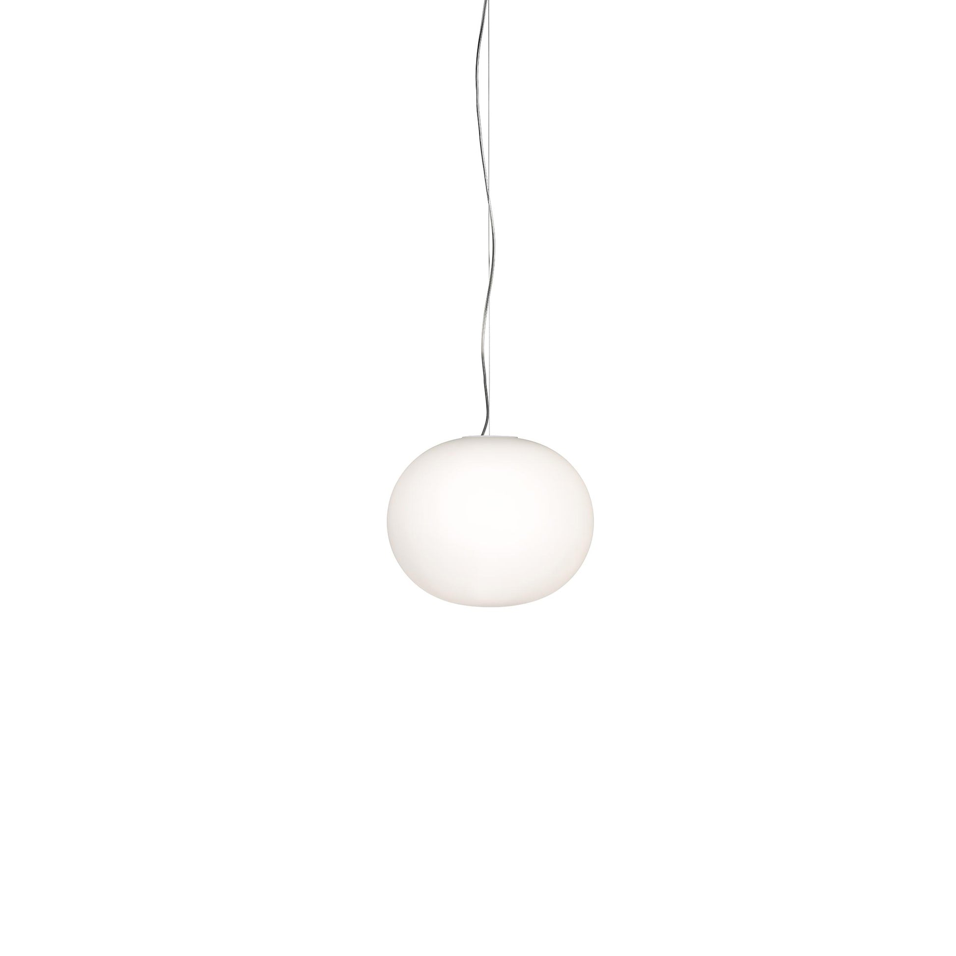 Hanging light that provides diffused lighting. Hand blown opal glass ball. The light is available in three sizes and various versions.