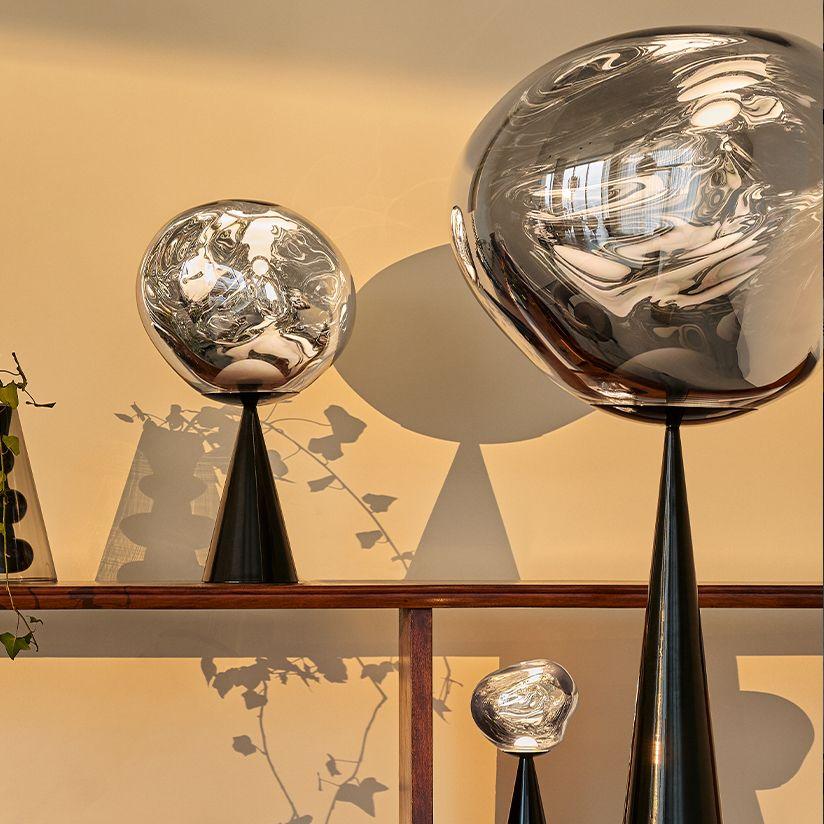 A table lamp that provides diffused lighting. The lamp is available in four colors and various versions. When switched on, the lamp provides diffused illumination, but when switched off, the sphere closes and reflects its surroundings. Melt is one of the best known and most popular lights from Tom Dixon. Melt is designed by Tom Dixon and Front in 2014 for Tom Dixon.