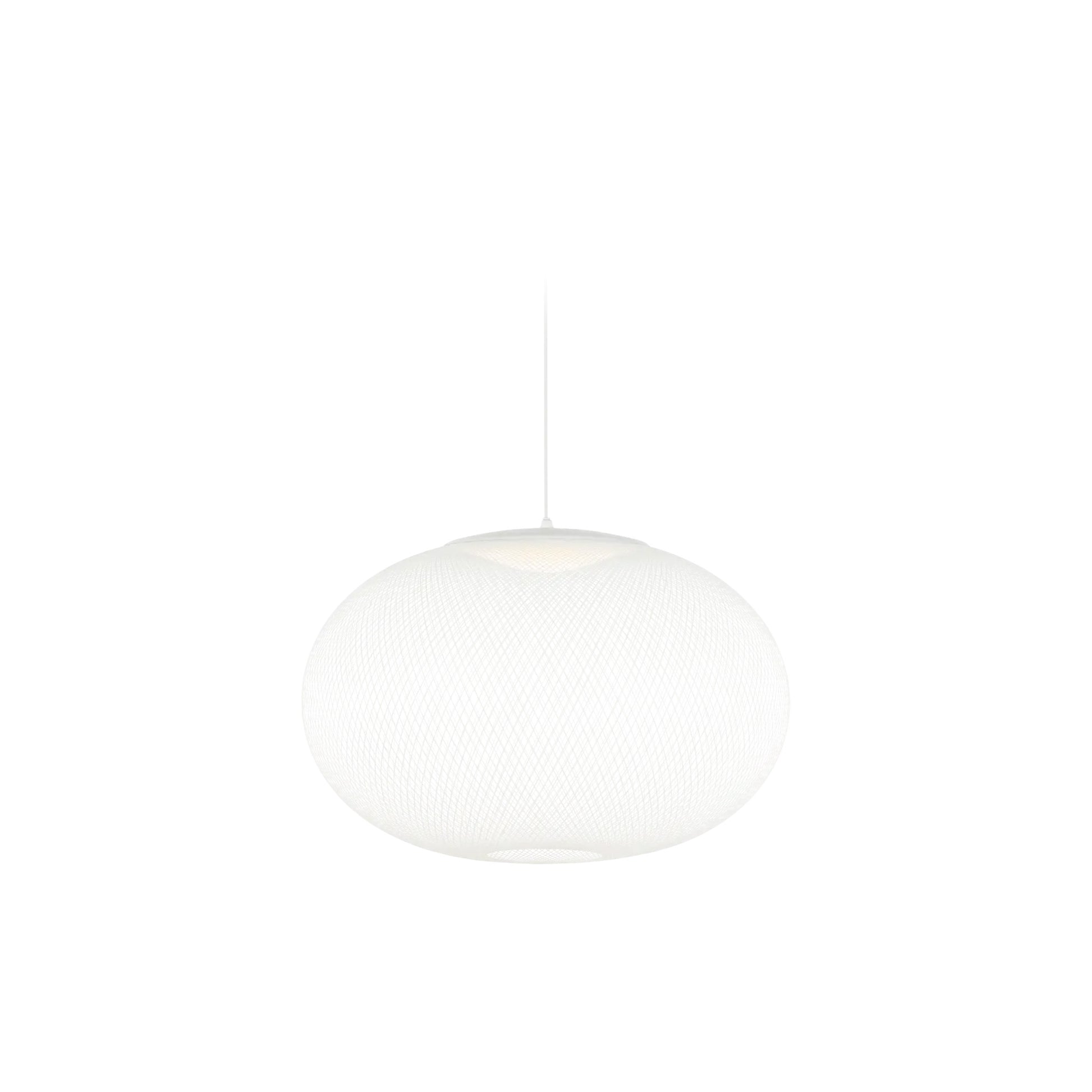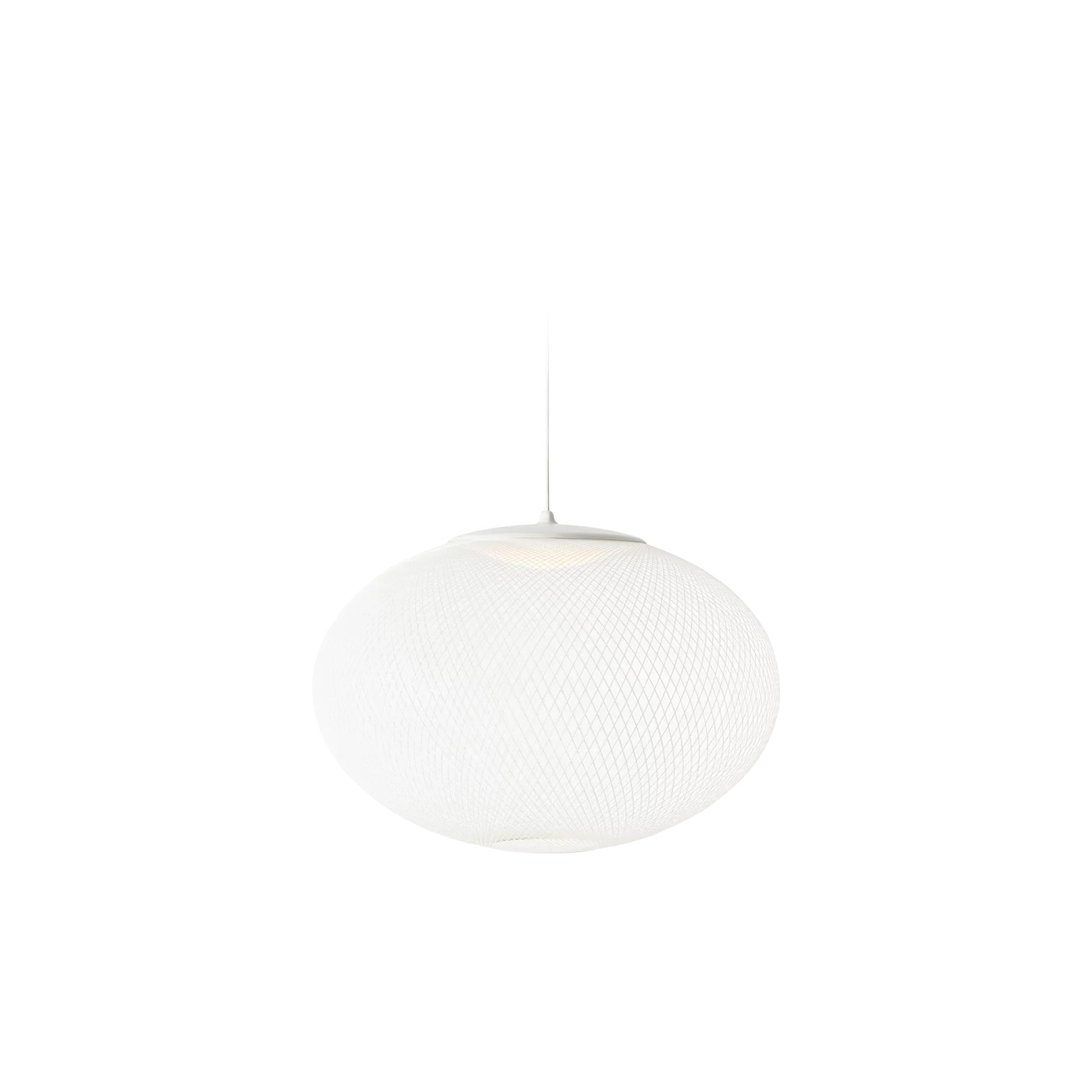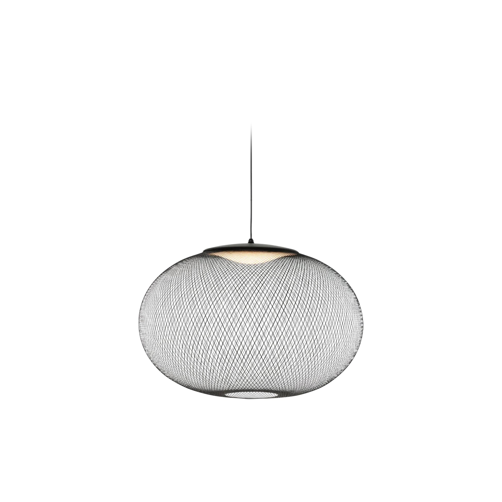 NR2 by Bertjan Pot is an elegant and bright bubble of white or black thread. The lattice pattern creates a fine web that shines and glimmers in the light. The fine web is oval-shaped and bears the signature style of Bertjan Pot; designs created from an experiment with different materials. The integrated LED lamp in NR2 subtly diffuses a soft and magical glow around the room. NR2 is available in two different colours and sizes.