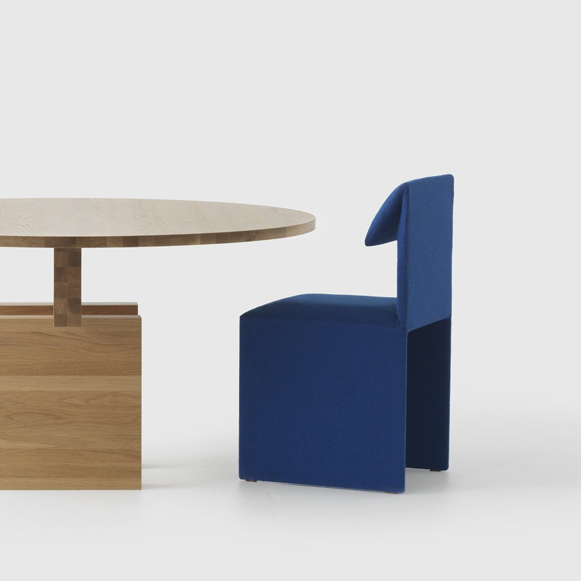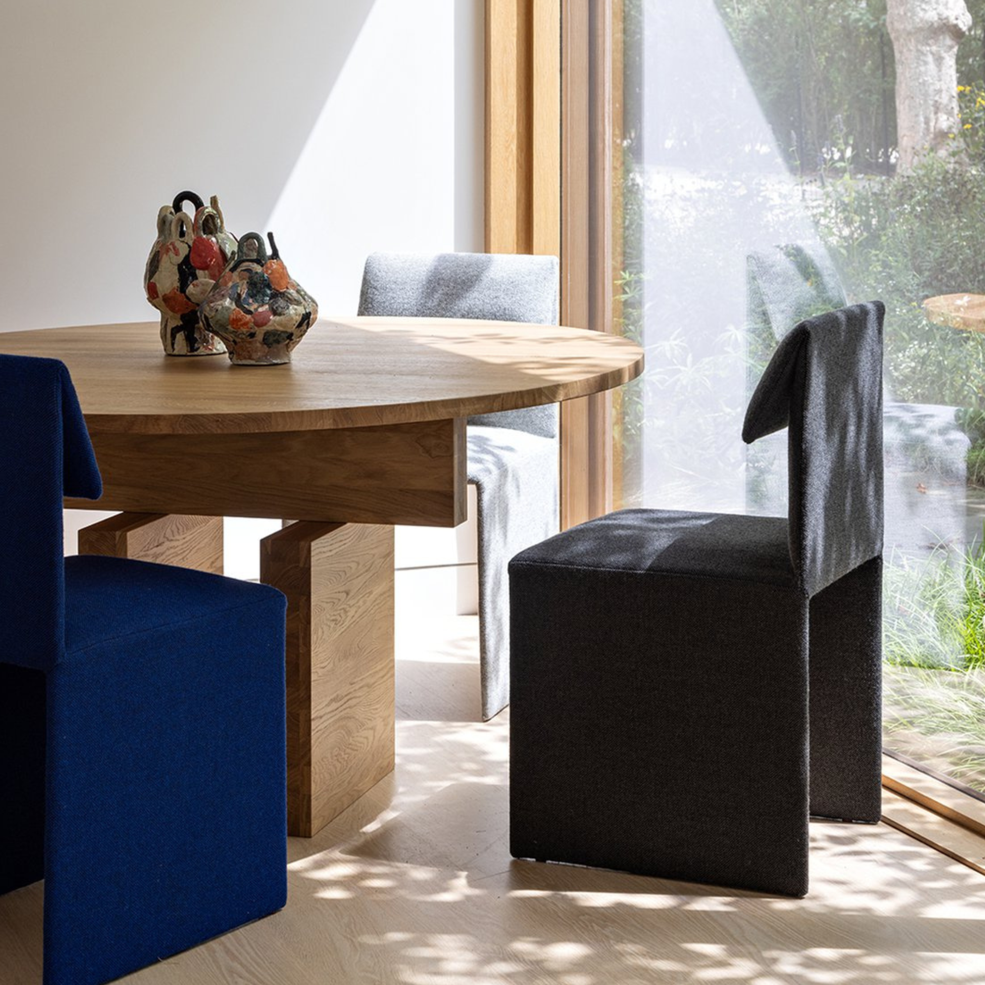Designed by Philippe Malouin, Sacha is a fully upholstered dining or side chair.